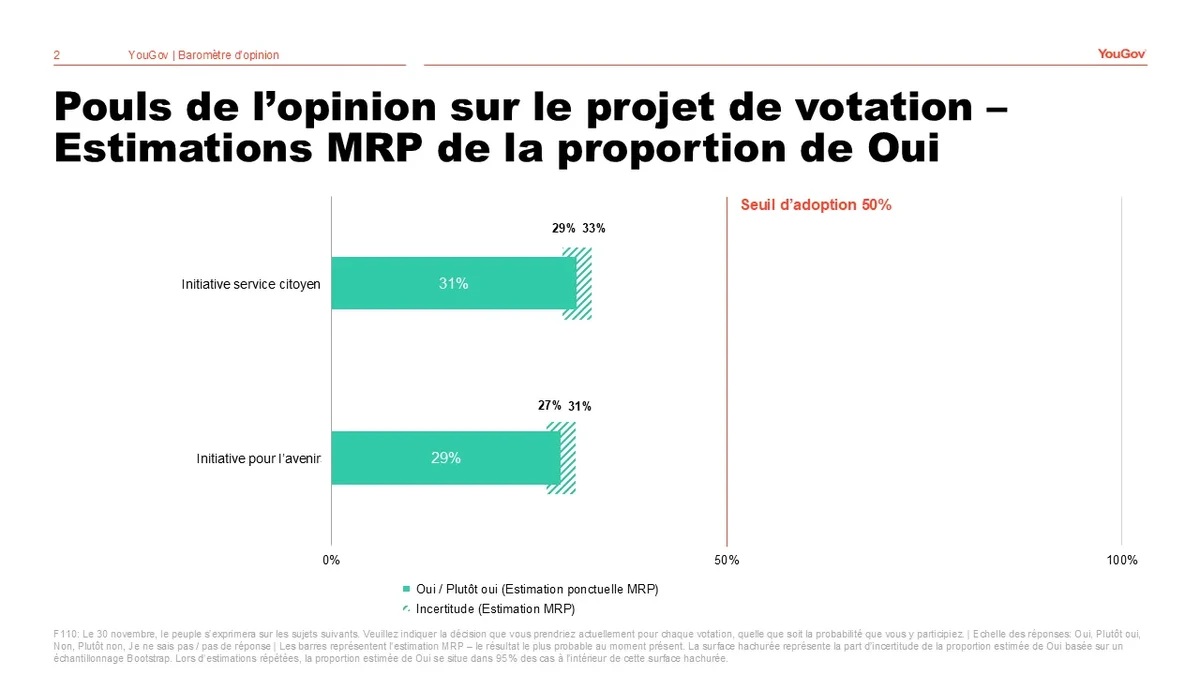 Premier baromètre d’opinion YouGov Suisse relatif aux votations fédérales du 30 novembre
